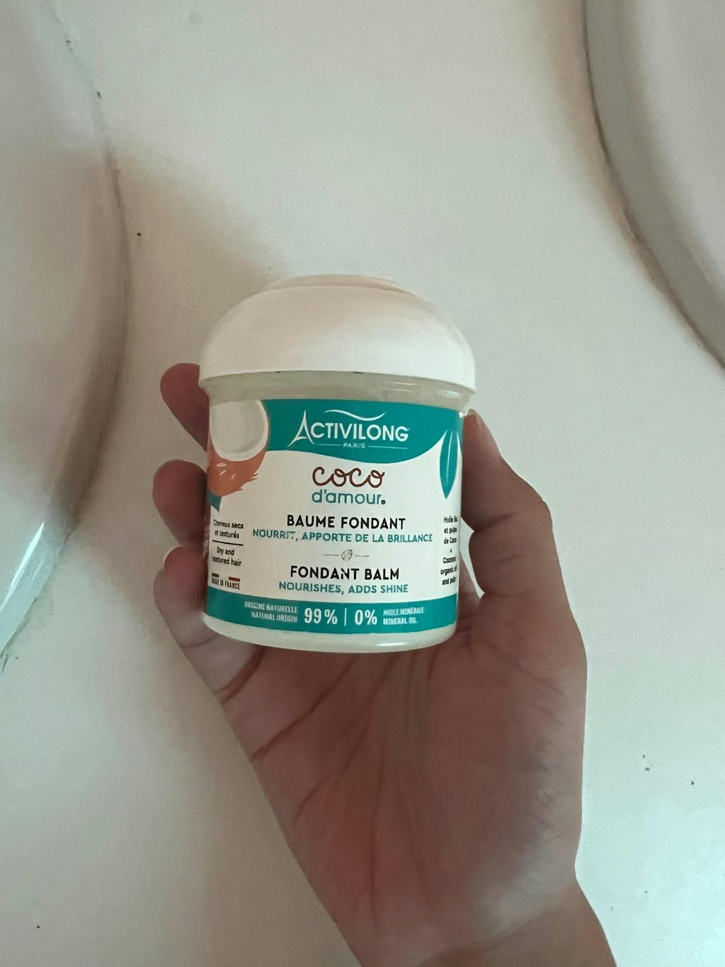"A delicious coconut fondant with a sweet and sugary fragrance, a caress on the hair to lovingly seal in its moisture and make it shine brightly."